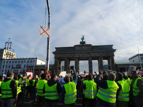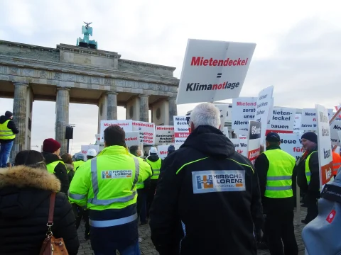Am Montag den 09.12.2019 traf sich die Berliner Bauwirtschaft am Brandenburger Tor, um auf die Auswirkungen des vom Berliner Senat geplanten Mietendeckels aufmerksam zu machen. Rund 500 Baufahrzeuge und 1500 Personen nahmen an der Sternfahrt und anschließend an der Kundgebung teil. Hirsch und Lorenz war Teil dessen.