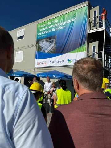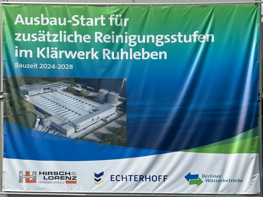 Bereits Anfang des Jahres hatte die Bietergemeinschaft Hirsch+Lorenz und Echterhoff den Zuschlag für den Bau der sogenannten 4. Reinigungsstufe im Klärwerk Ruhleben erhalten. Am 17. August 2024 wurde dies unter der Schirmherrschaft der Aufsichtsratsvorsitzenden und Wirtschaftssenatorin Franziska Giffey gebührend gefeiert.