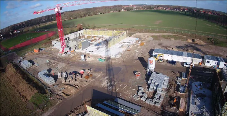 Man sieht sie schon von weitem: die drei Baukräne an der Umgehungsstraße-Kreuzung Altlandsberg/Fredersdorf-Vogelsdorf. Mitten im Grünen zwischen Bollensdorfer Weg und Fredersdorfer Chaussee wächst der neue Campus von Altlandsberg mit sechszügiger Oberschule und Dreifeldsporthalle. Er wurde 2019/20 von den Stadtverordneten auf den Weg gebracht und seither sachkundig dank engen Zusammenwirkens auch mit der Schulleitung und den Lehrern beim Planen und Verwirklichen des Projekts mit Beschlüssen untersetzt. Ein 44 Millionen-Ding!