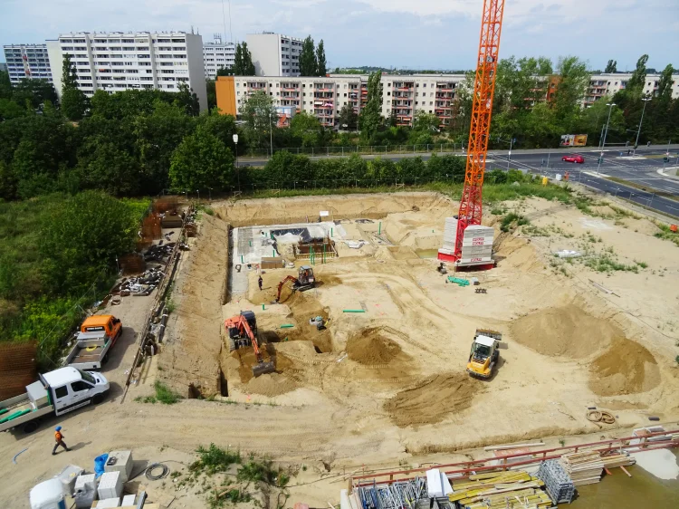 Entlang der Alexander-Meißner-Straße im Berliner Bezirk Treptow-Köpenick entstehen drei Gewerbebauten mit einer Gesamt-Geschoßfläche von 9826 m², 7281 m² und 7326 m² und einem Rohbau-Volumen von insgesamt 86.600 m³. Der Grundstein hierfür wurde mit der künftig als Hotel genutzten und im Rohbau fertigen Hausnummer 4 gelegt. Hinzu kommen das sich aktuell im Rohbau befindende Bürogebäude mit der Hausnummer 6 und das Haus 2. Beim künftigen Haus 2, ebenfalls ein Hotel, laufen aktuell die Erdarbeiten, wie auch die ersten Rohbauarbeiten.