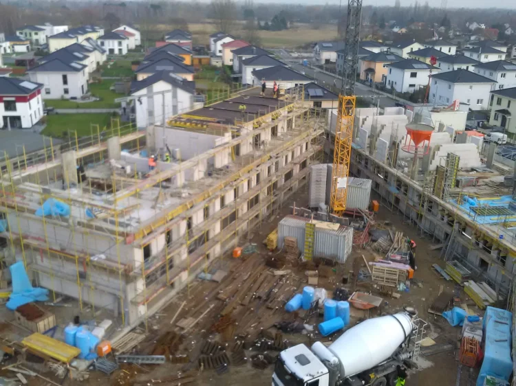 werden im hinteren Bereich des Grundstücks 26 Townhäuser in zwei Riegeln (Baukörper 4 und