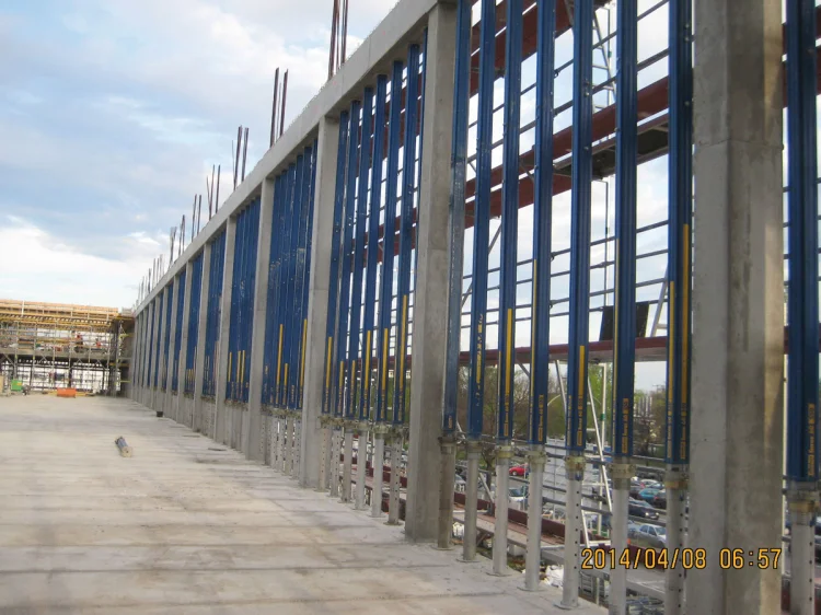 Ein dynamisches Projekt: Für den schlüsselfertigen Neubau eines BMW-Autohauses in Berlin-Siemensstadt wurde der Rohbau in Stahlbetonbauweise errichtet. Dabei kamen Spannbetondecken sowie Stahlbeton-Pi-Decken im EG und 1. OG zum Einsatz. Der Ausbau wurde nach den Vorgaben der BMW AG durchgeführt und erfolgte unter der Geschäftsführung der Hirsch + Lorenz Ingenieurbau GmbH in einer ARGE mit der GKK AG und der Wayss + Freytag AG.