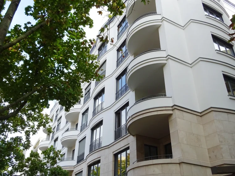 In unmittelbarer Nähe zum Berliner Kurfürstendamm entsteht ein Neubau mit 18 Eigentumswohnungen auf sechs Etagen, einem Dachterrassenpool sowie einer per PKW-Aufzug erreichbaren Tiefgarage. Das Gebäude wird in WU-Bauweise errichtet, die mit der Bestandstiefgarage der Nachbarbebauung verbunden wird. Das Nachbargebäude wird mittels HDI-Unterfangung gesichert, das Kranfundament ist auf Bohrpfählen gegründet.