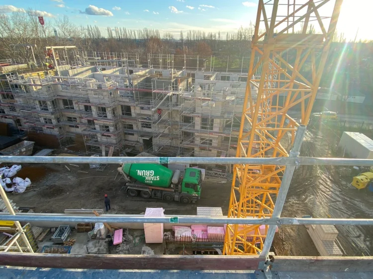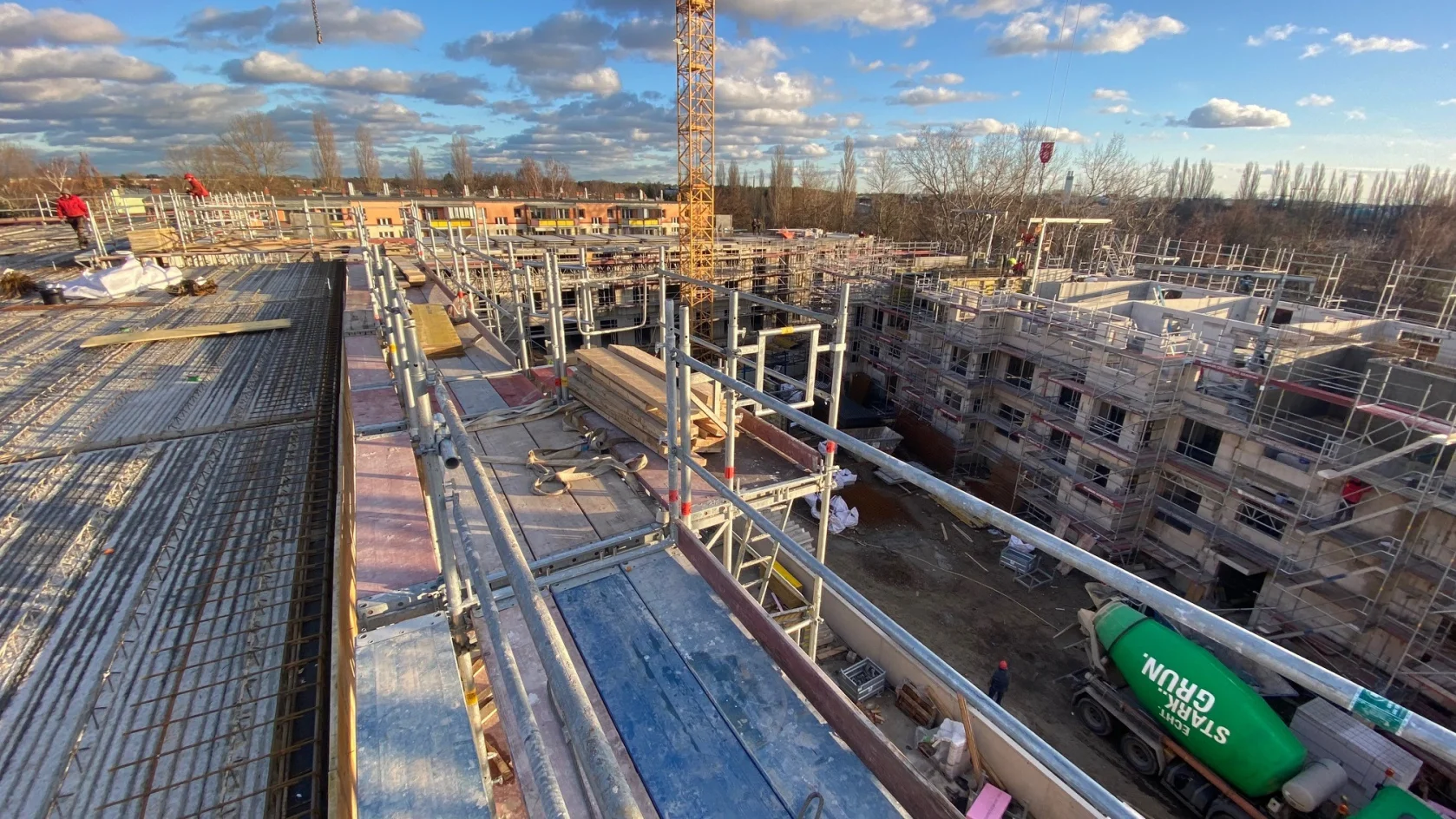 Die 3H Hartriegelstraße 130 GmbH errichtet auf dem Grundstück Hartriegelstraße 130, 12439 Berlin, im Ortsteil Niederschöneweide des Bezirks Treptow-Köpenick, ein Gebäudeensemble aus drei viergeschossigen Wohnhäusern und einer unterirdischen Tiefgarage. In dem nördlichen Gebäude befinden sich 32 Wohnungen, in dem östlichen 44 Wohnungen und in dem südlichen 32 Wohnungen; mithin werden insgesamt 108 Wohnungen erstellt, die Tiefgarage verfügt über 78 PKW-Stellplätze.