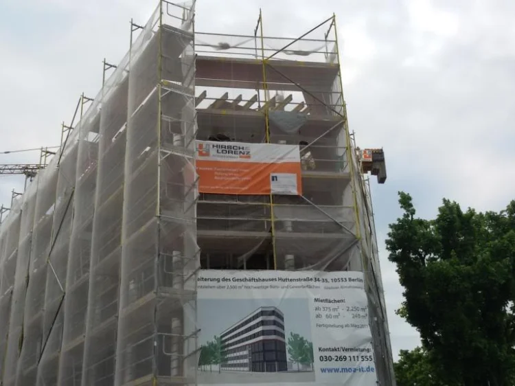 Berlins Traditions-Gewerbegebiet in Moabit ist heute pulsierender Melting-Pot von IT- und Kreativbranche, Dienstleistern, Handel und klassischer Industrie. Hier entstehen zwei Anbauten mit sechs Vollgeschossen, die auf Bohrpfählen gegründet sind. Ein Bürogebäude wird um drei Vollgeschosse aufgestockt. Eine besondere Herausforderung besteht darin, dass der Bürobetrieb während der Baumaßnahme aufrecht erhalten werden muss.