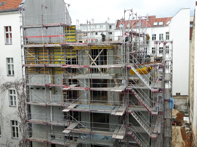 In der Knesebeckstraße 15 entsteht das Stadthaus “Hugo” mit 10 Eigentumswohnungen und 2 Gewerbeeinheiten sowie Penthouse im DG mit Dachterrasse als Lückenschließung. Im Hof des Grundstücks entsteht ein Atelierhaus mit 5 weiteren Eigentumswohnungen sowie Penthouse. Beide Gebäude sind über die Tiefgarage in WU-Bauweise miteinander verbunden, die Zufahrt erfolgt über einen PKW-Aufzug.