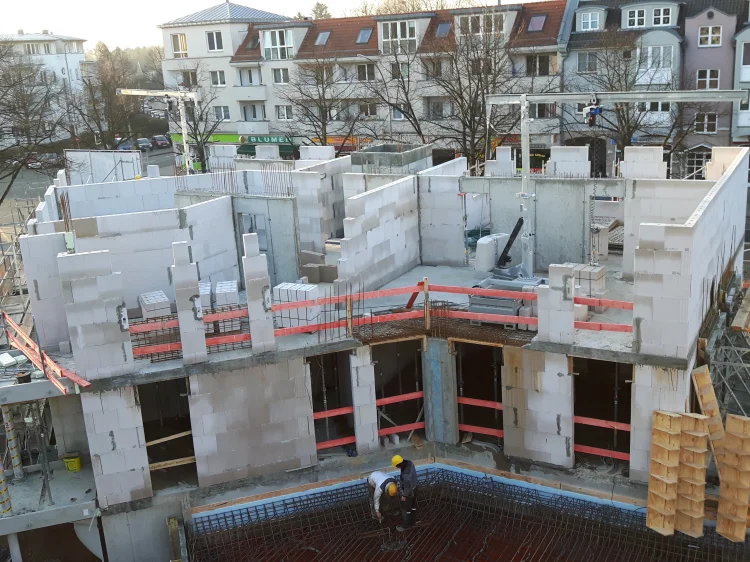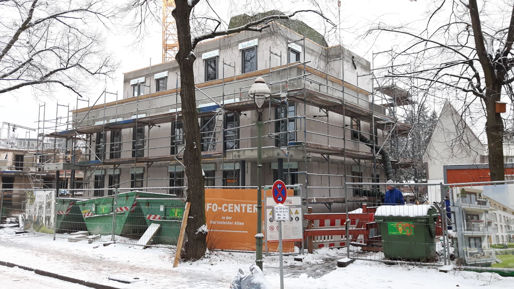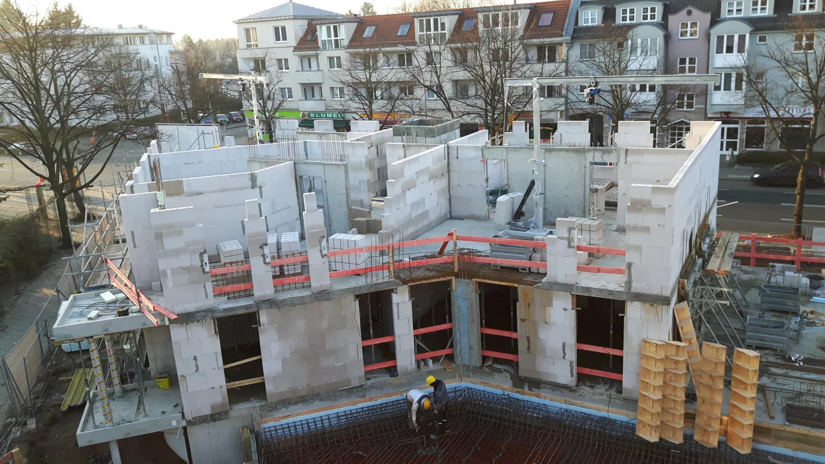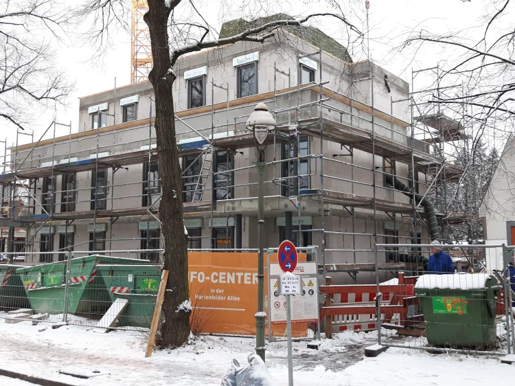 Marienfelde gehört zu den familienfreundlichsten Gegenden Berlins. In der Marienfelder Allee, ungefähr 200 Meter vom S-Bahnhof Marienfelde entfernt, entsteht der Neubau eines viergeschossigen Eckgebäudes mit insgesamt 33 Wohneinheiten – aufgeteilt auf zwei voneinander getrennte Wohnhäuser und eine Hofunterkellerung mit Tiefgarage in WU-Bauweise.