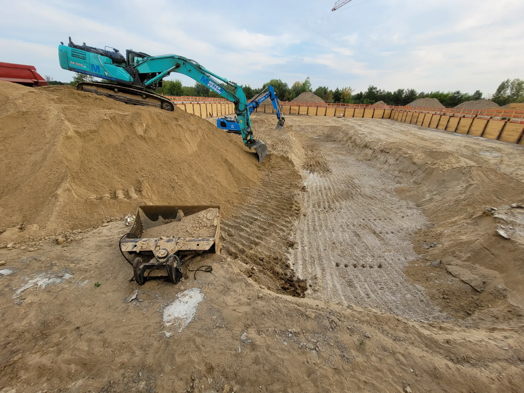 Unser Auftrag umfasst die Leistungen von der Errichtung der fünfzig mal sechzig Meter großen, sieben Meter tiefen Baugrube über die Rohbauarbeiten der Zu und Ablaufkanäle, sowie der Filtrationsbecken bis hin zur schlüsselfertigen Fertigstellung des Technikgebäudes.