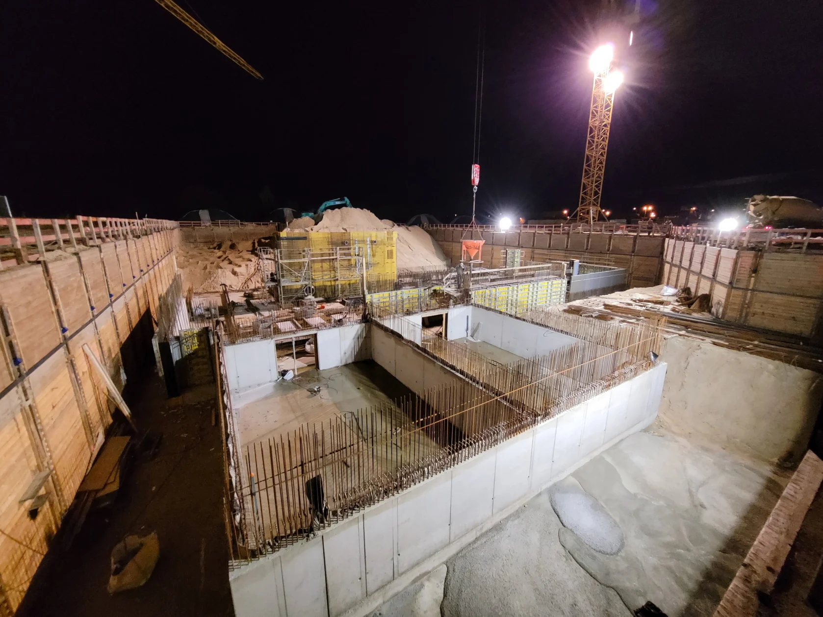 Die Fertigstellung und Inbetriebnahme der Anlage ist für das Jahr 2025 geplant. Besondere Aufmerksamkeit in der Ausführung liegt auf den hohen, qualitativen Ansprüchen des gesamten WU Bauwerks mit bis zu sieben Meter hohen Wänden und den vielen spezifischen technischen Einbauteilen.