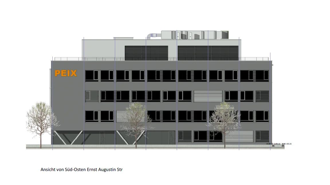 Am Wirtschafts- und Wissenschaftsstandort in Berlin Adlershof in der Willi-Schwabe-Straße Ecke Ernst-Augustin-Straße wurde für die PEIX Immobilien GmbH ein neues Bürogebäude errichtet. Geplant war ein viergeschossiges Bürogebäude mit Staffelgeschoss Nutzfläche von ca. 2.200m² auf einer Grundfläche von ca. 1.500 m². Besonders hervorzuheben ist, dass der Großteil der Innenwandflächen als Sichtbeton erstellt und Stahlverbundstützen eingesetzt wurden.