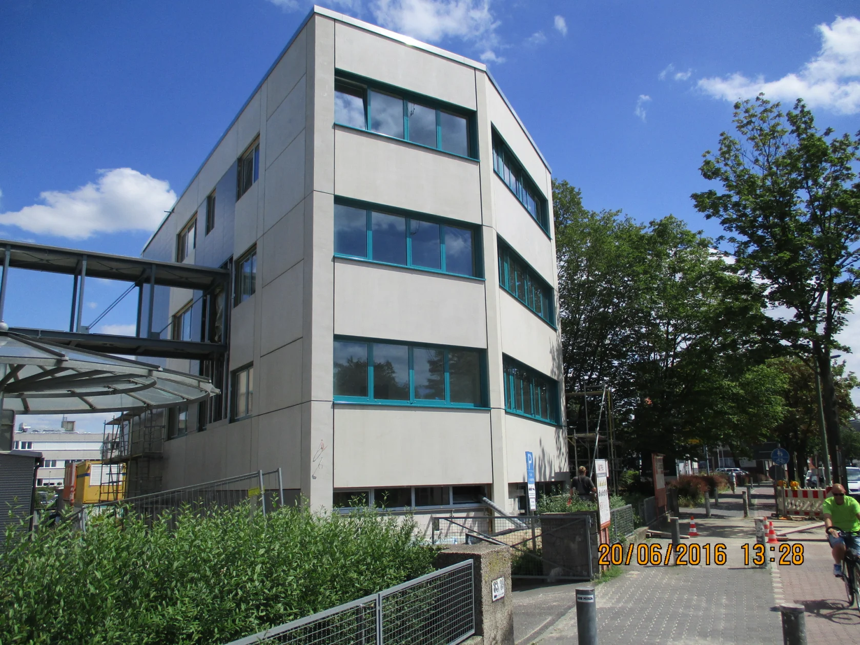 Im Tempelhofer Weg errichteten wir ein schlüsselfertiges Bürogebäude. Hinzu kam eine Stahlbrücke als Verbindung zum Bestandsgebäude. Das viergeschossige Bürogebäude, wurde mit einer hinterlüfteten Betonvorhangfassade aus Fertigteilen ausgestattet. Das Untergeschoss wurde als Souterrain in einer WU-Konstruktion errichtet.